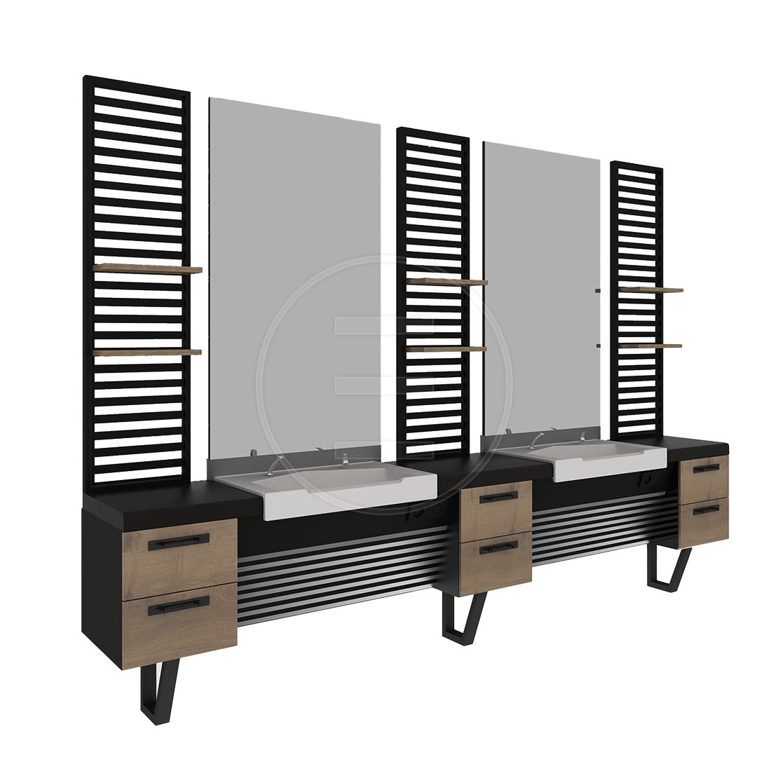 Ceramix Dip verleiht Ihrem Friseursalon Eleganz und Funktionalität mit seinem schwebenden LED-beleuchteten Spiegel, den Edelstahl-Fußleisten und dem Keramikwaschbecken mit italienischem Wasserhahn. Mit seinem elektrostatisch pulverbeschichteten Blechdekor und modernen Details bietet es Ihren Kunden ein unvergessliches Erlebnis.