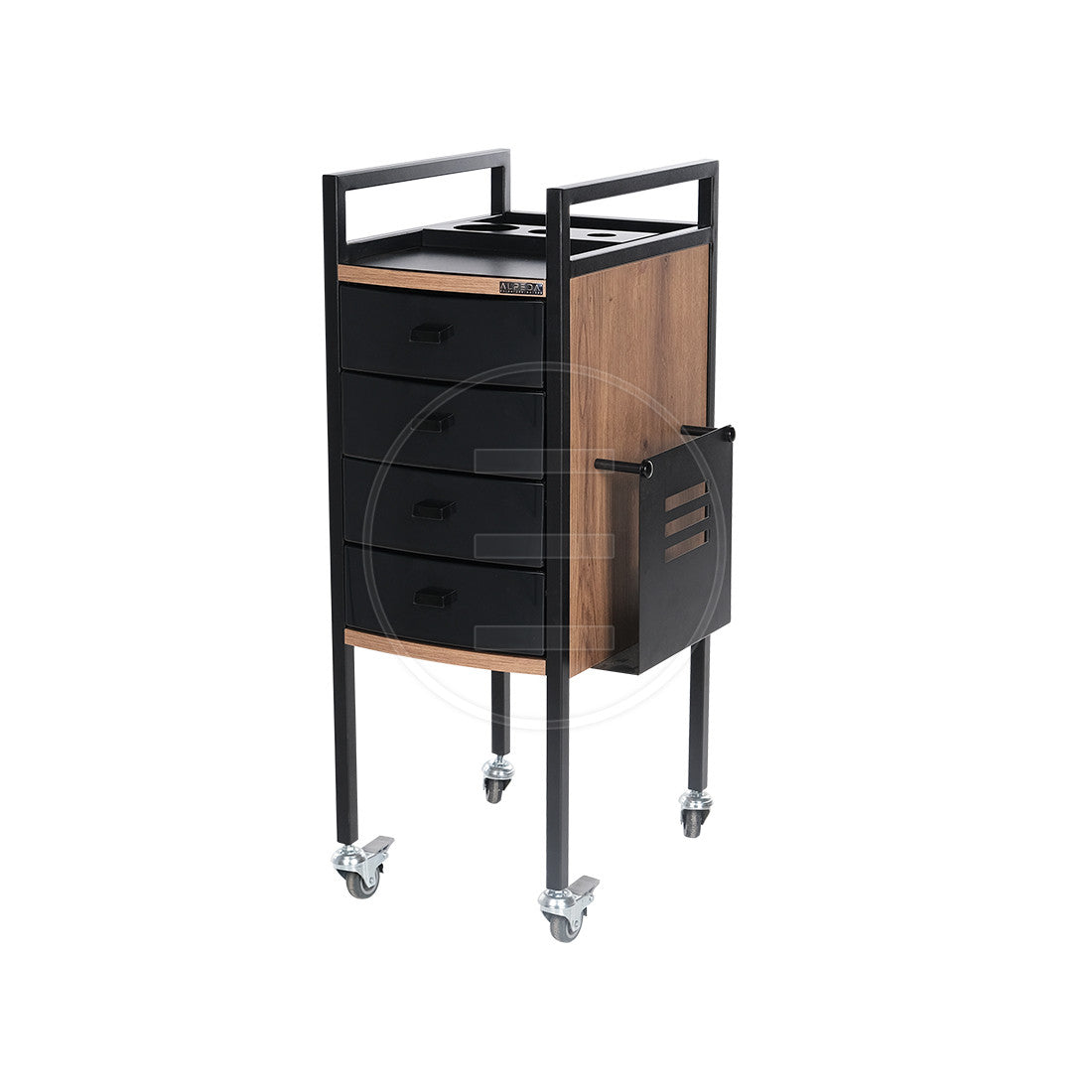 Regal aus schwarzem Kunststoff mit Schubladen