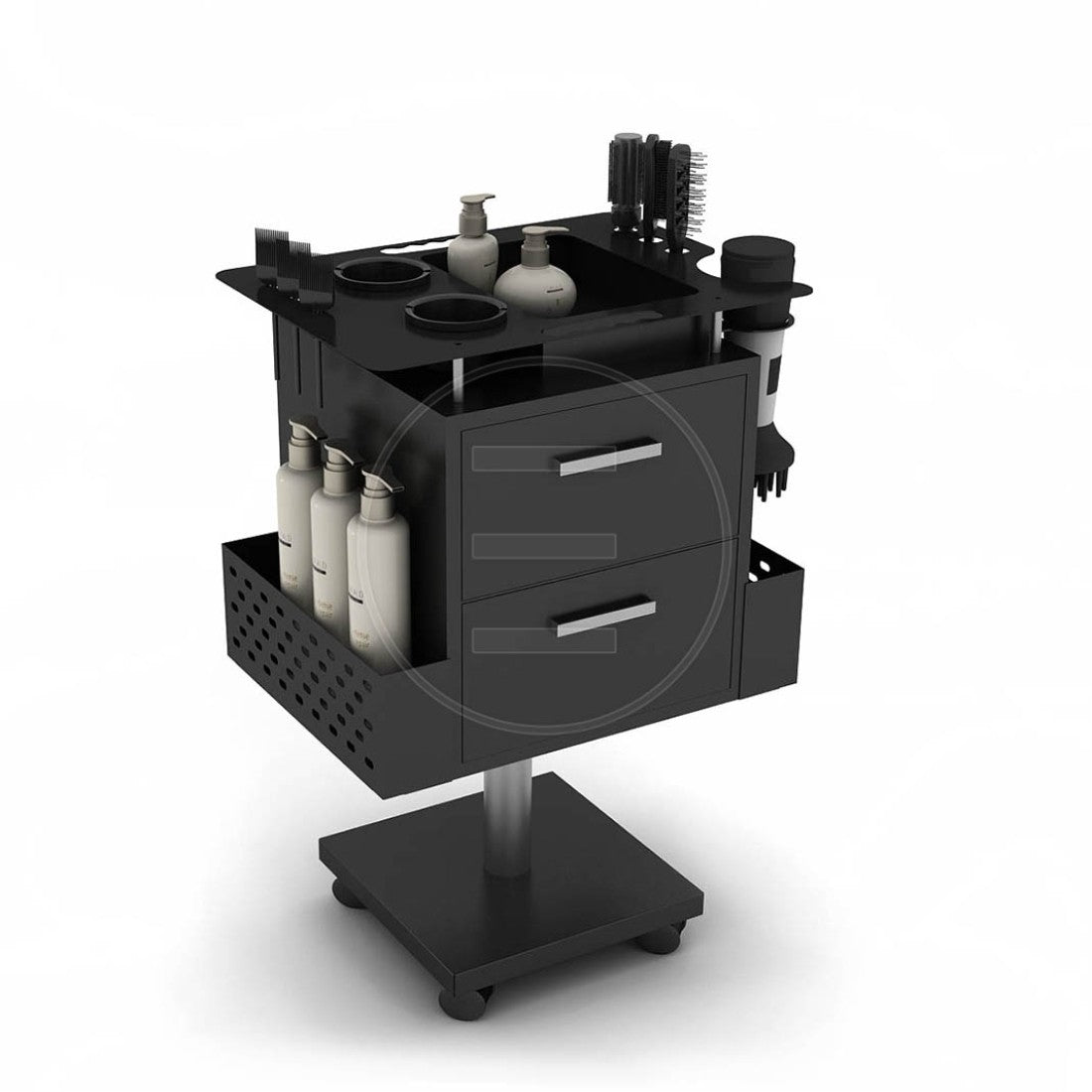 Oberes Regal, Seitenregale und Füße aus schwarz lackiertem, lasergeschnittenem Blech