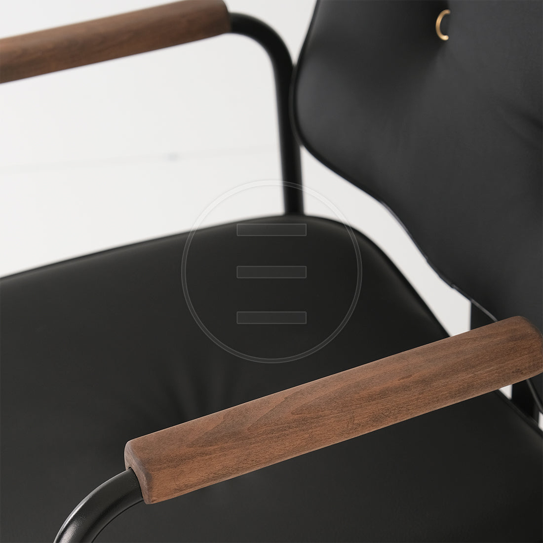 Die Armlehnen sind aus pulverbeschichtetem Profilmaterial für ein modernes Aussehen und Langlebigkeit. Gleichzeitig ist die Armlehne des Sessels aus Massivholz gefertigt. Dieses Detail verleiht dem Sessel einen natürlichen Touch und Eleganz und bietet gleichzeitig eine solide Struktur.