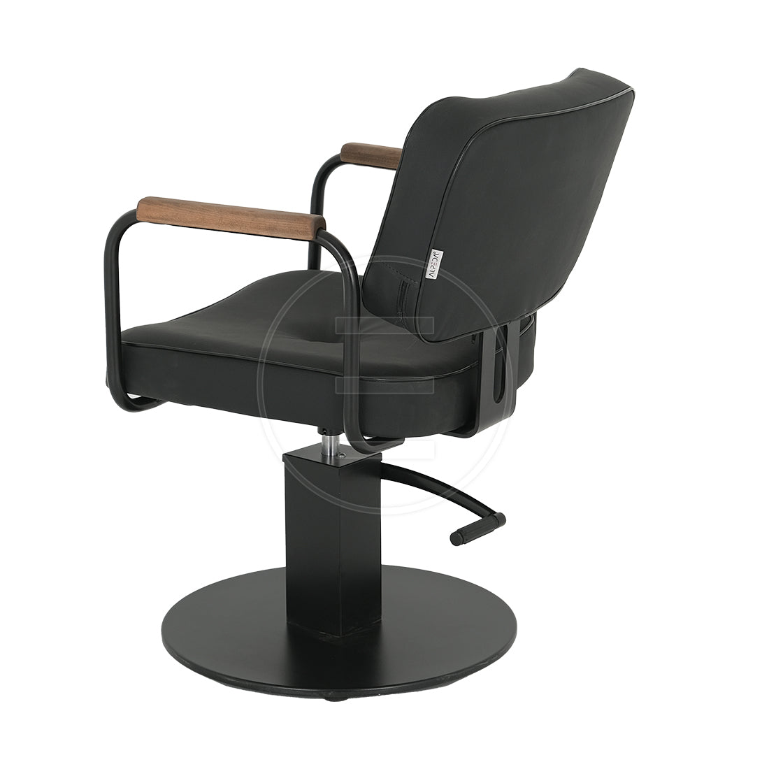 Das mit hochwertigem Schaumstoff bezogene Leder verleiht dem Stuhl ein luxuriöses Gefühl und sorgt für zusätzliche Weichheit. Die Stuhlbeine sind mit lackierten Hydraulikfüßen aus Metall ausgestattet, die für Haltbarkeit und Stabilität sorgen. Dies erhöht den Arbeitskomfort des Friseurs und erleichtert es dem Kunden, die gewünschte Position zu finden.