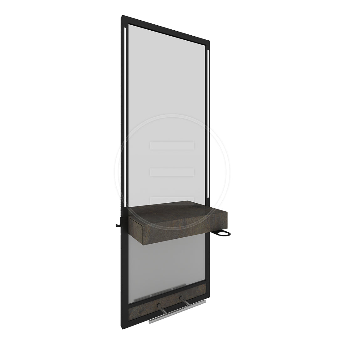 Sein solides und langlebiges, elektrostatisch pulverbeschichtetes Metallgehäuse bietet eine ideale Struktur für den Langzeitgebrauch, während der Schubladentisch praktischen Stauraum bietet. Diese Bank betont Eleganz und einen modernen Touch mit ihrer in den Metallrahmen eingebetteten LED-Leiste und macht sie durch ihr bewegliches Föhndesign einfacher und benutzerfreundlicher. Mit seinem schwebenden Spiegel sorgt es auch für ästhetische Integrität.