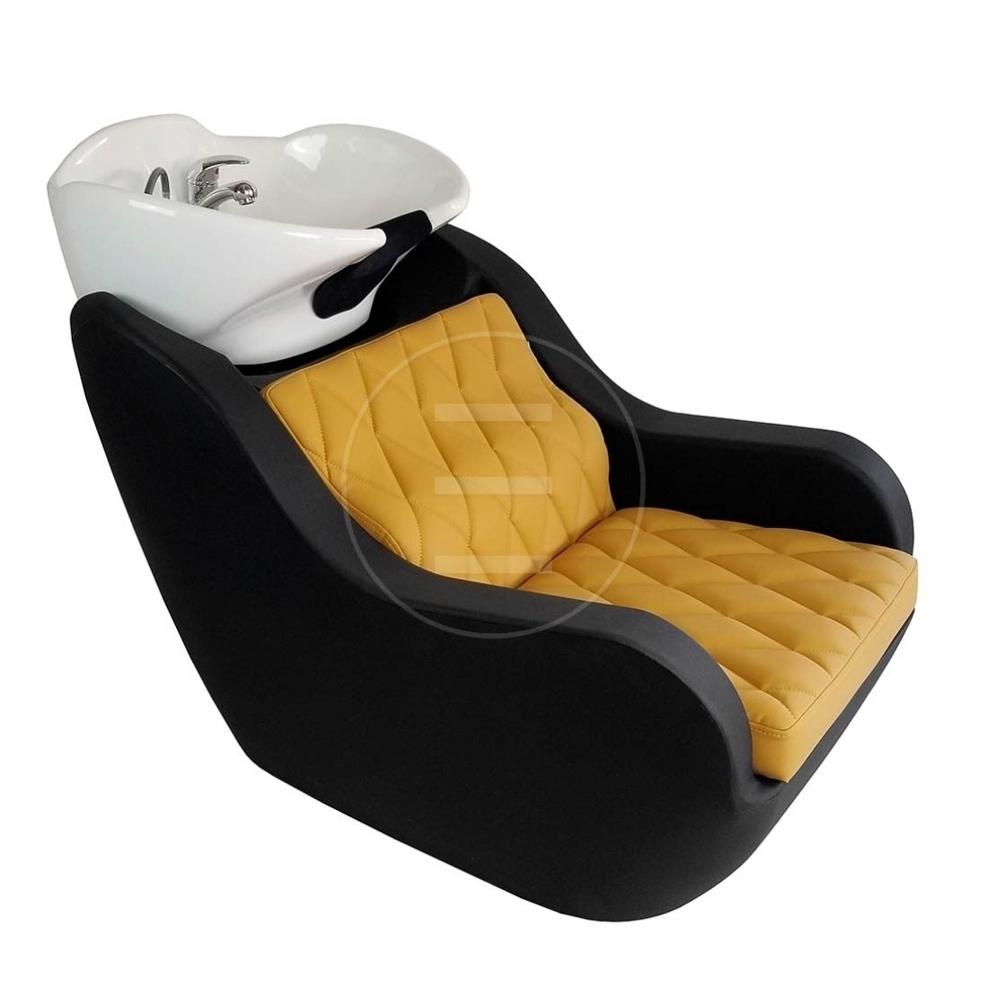 Der Waschstuhl Rest Line Kap, der sich durch seinen schwarzen Kunststoffkörper und sein ergonomisches Design auszeichnet, verleiht Salons eine innovative Haltung.