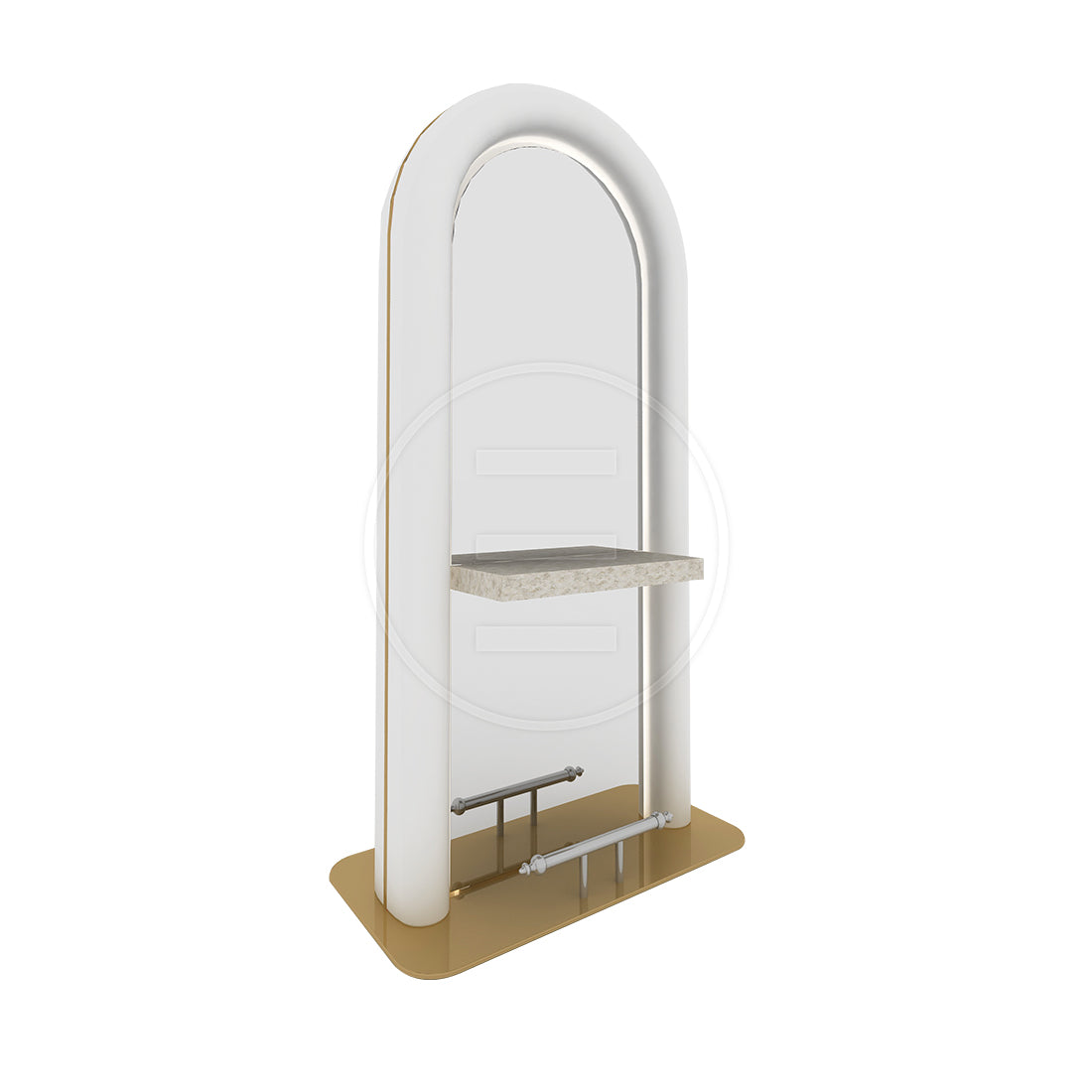 Sein Körper ist mit einer ABS-Vakuumbeschichtung überzogen, die ihm ein langlebiges und stilvolles Aussehen verleiht. Während seine Silikon-LED-Leiste ein beeindruckendes Lichterlebnis bietet, vereint sein Float-Spiegel Eleganz und Funktionalität. Das vernickelte Fundamentmodul von ROVA bietet ein elegantes Erscheinungsbild und bietet gleichzeitig ein solides Fundament. Als Vordertisch verwendeter MDF vereint Haltbarkeit und ästhetisches Erscheinungsbild.